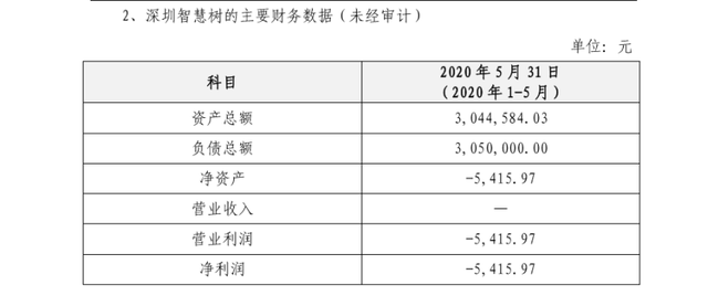 在公告中,乐动网站-乐动(中国)科技披露了深圳智慧树的主要财务数据(未经审计),如下图所示。